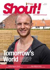 Registered Office: The Fire Fighters Charity, Level 6, Belvedere, Basing View, Basingstoke, Hampshire, RG21 4HG. Charity registered in England & Wales (1093387) and Scotland (SC040096) Disclaimer: The Fire Fighters Charity believe that the information given in this magazine is correct at the time of going to print. We cannot accept any responsibility for any errors or omissions. The opinions expressed in the magazine are those of the writers and not always that of the Charity. Where external links are provided – to other websites or social media accounts – we do not endorse the content carried on these sites and readers visiting them do so at their own risk. Although all advertising is expected to conform to the appropriate advertising standards, inclusion or insertion of such material in this magazine does not constitute a guarantee or endorsement on The Fire Fighters Charity’s behalf of the quality or value of any products or of the claims made for them by the advertiser. Readers are advised to verify product information with the advertiser. Shout! about it Contact the editorial team on shout@firefighterscharity.org.uk or 01256 366566