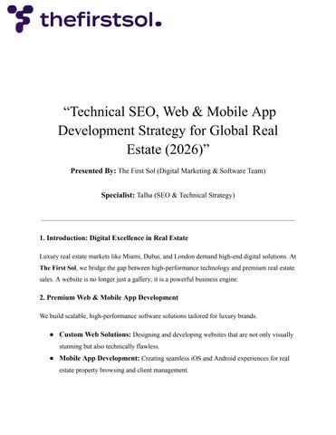 LuxuryrealestatemarketslikeMiami,Dubai,andLondondemandhigh-enddigitalsolutions.At TheFirstSol,webridgethegapbetweenhigh-performancetechnologyandpremiumrealestate sales.Awebsiteisnolongerjustagallery;itisapowerfulbusinessengine.