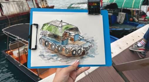 將於7月至9月週末期間特別加開「漁藝 共賞寫生之旅」,參加者可搭乘舢舨遊覽 香港仔避風塘,實地觀察漁船生活。活動 包含3小時航行與寫生,由專業畫家指導