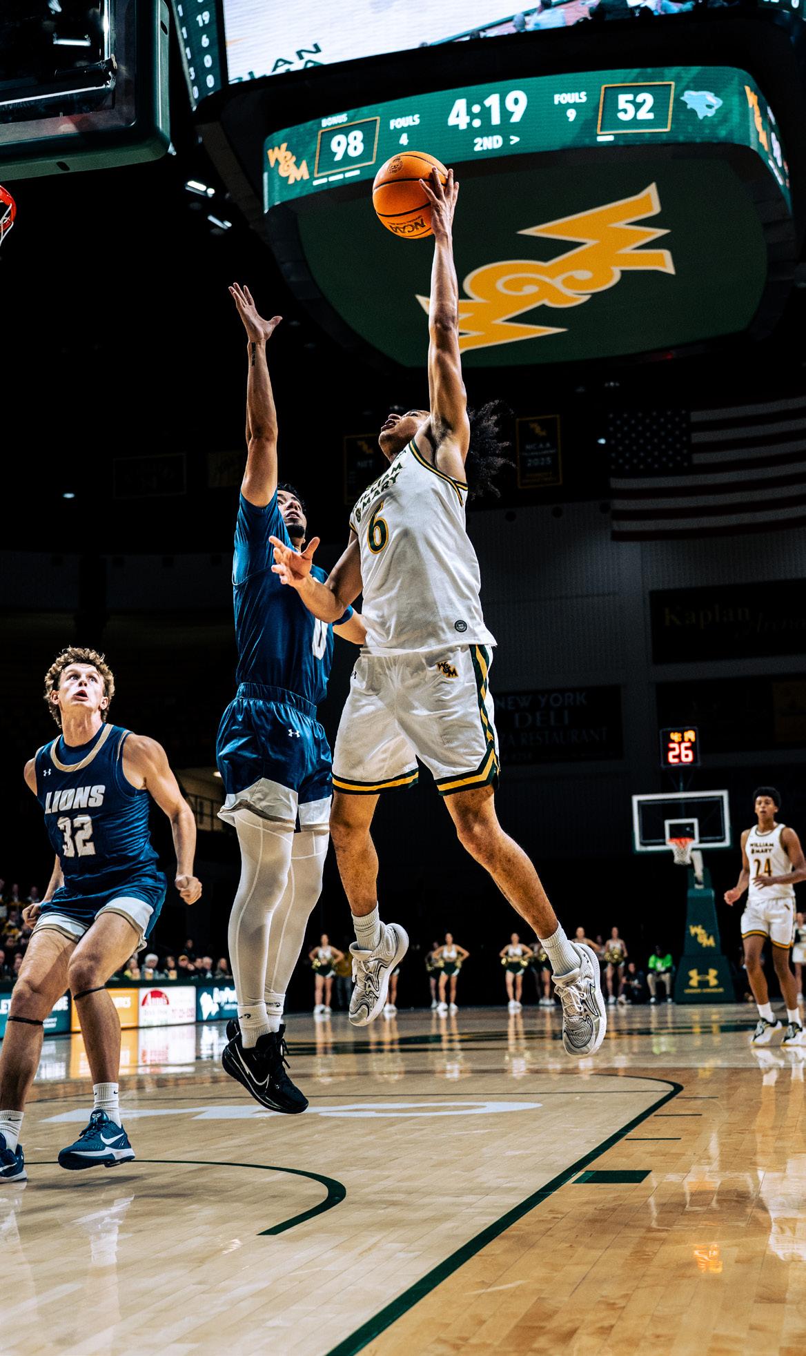 Vahlberg Fasasi dominated the NC A&T defense in nearly every category, going four-for-seven on the interior and fivefor-seven from the charity stripe, nailing two triples, throwing several dimes to cutters, and flushing home multiple putbacks. When the Aggies entered halftime within striking distance after draining a cascade of shots, it was Vahlberg Fasasi who helped put the visitors away for good, connecting on two consecutive layups and extending the Tribe’s lead back to eight points.
