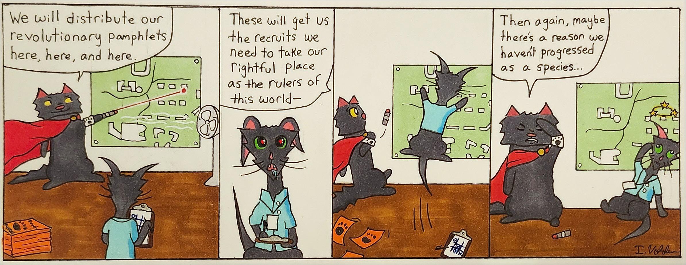 Still, I know some of you readers won’t stand for me expressing my agency through art. I don’t understand why you can’t handle my lack of interest in engaging with your questions. You ask too much of me. Aren’t two masterpieces a month enough for you? You know what they say, I guess ... if you give a mouse a cookie, it’ll ransack your pantry and then eat through your plastic tupperwares that hold your Trader Joe’s peanut butter cups like a little racoon until you call animal control on them, but then, when the animal control guys get there, they accidentally take you instead because you were trying out a new hairstyle and they con-
