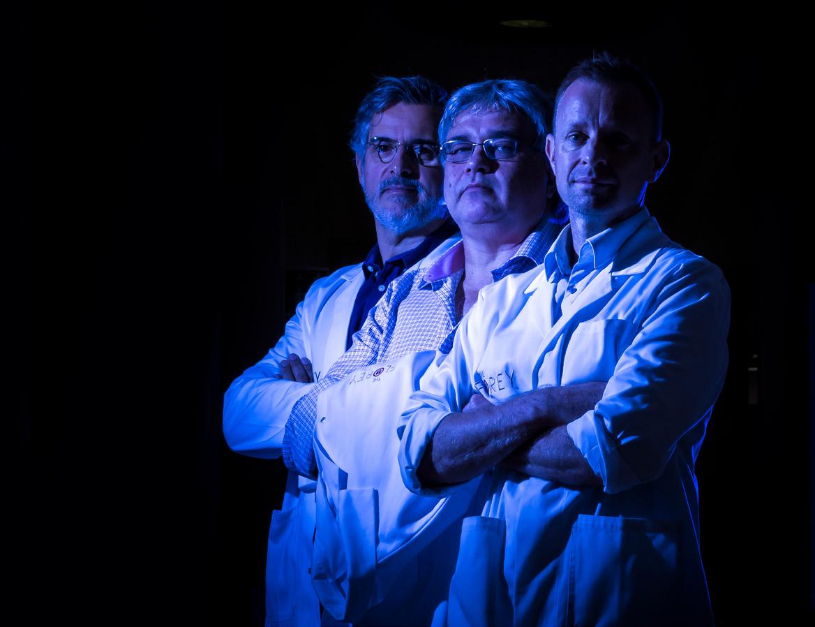(L-R): Prof Kevin Barnham, A/Prof Peter Crouch and Prof Ashley Bush hard at work with CuATSM.