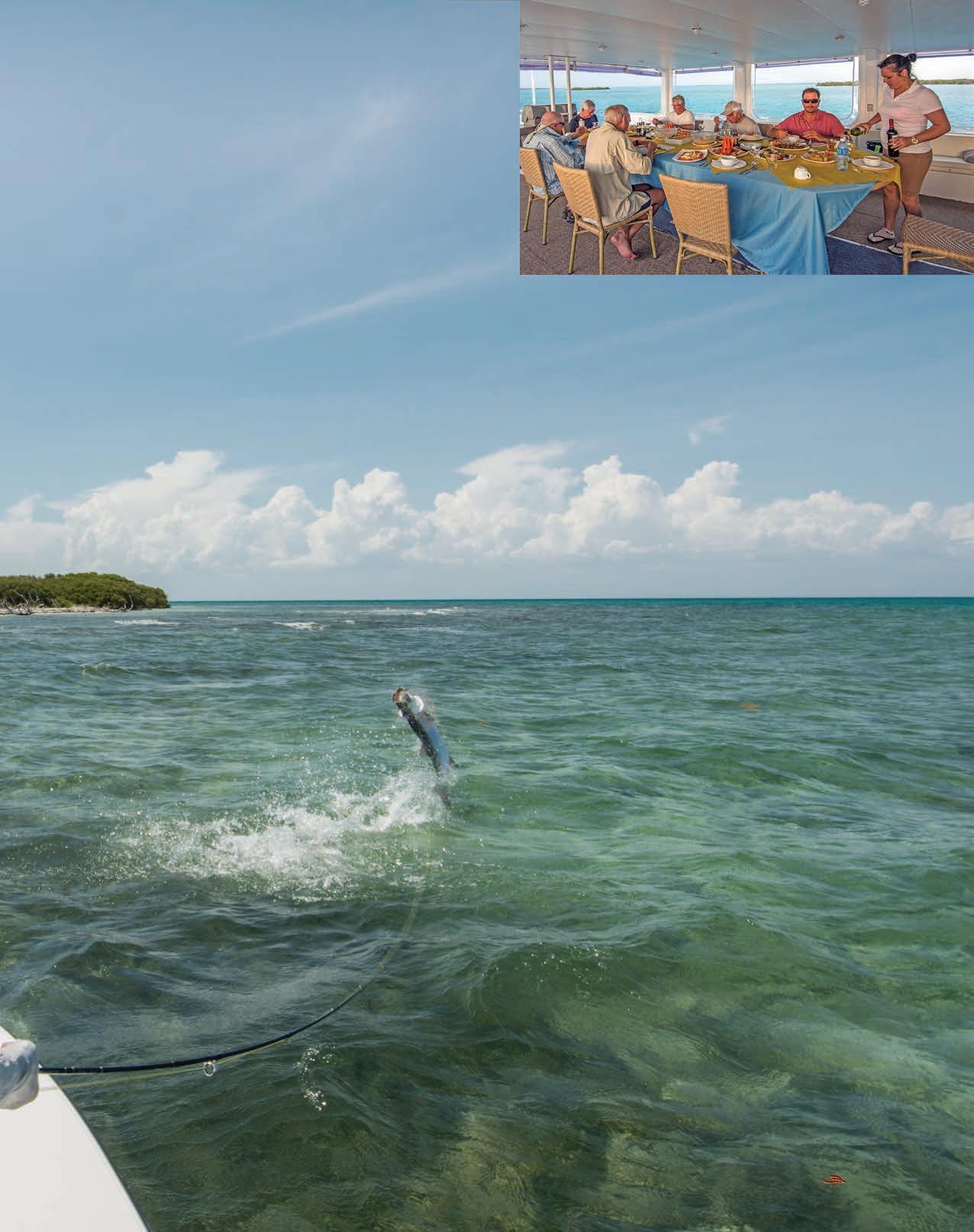 Their mothership is a magnificent catamaran, outfitted to accommodate eight anglers, four guides, the captain, chef and hostess comfortably.