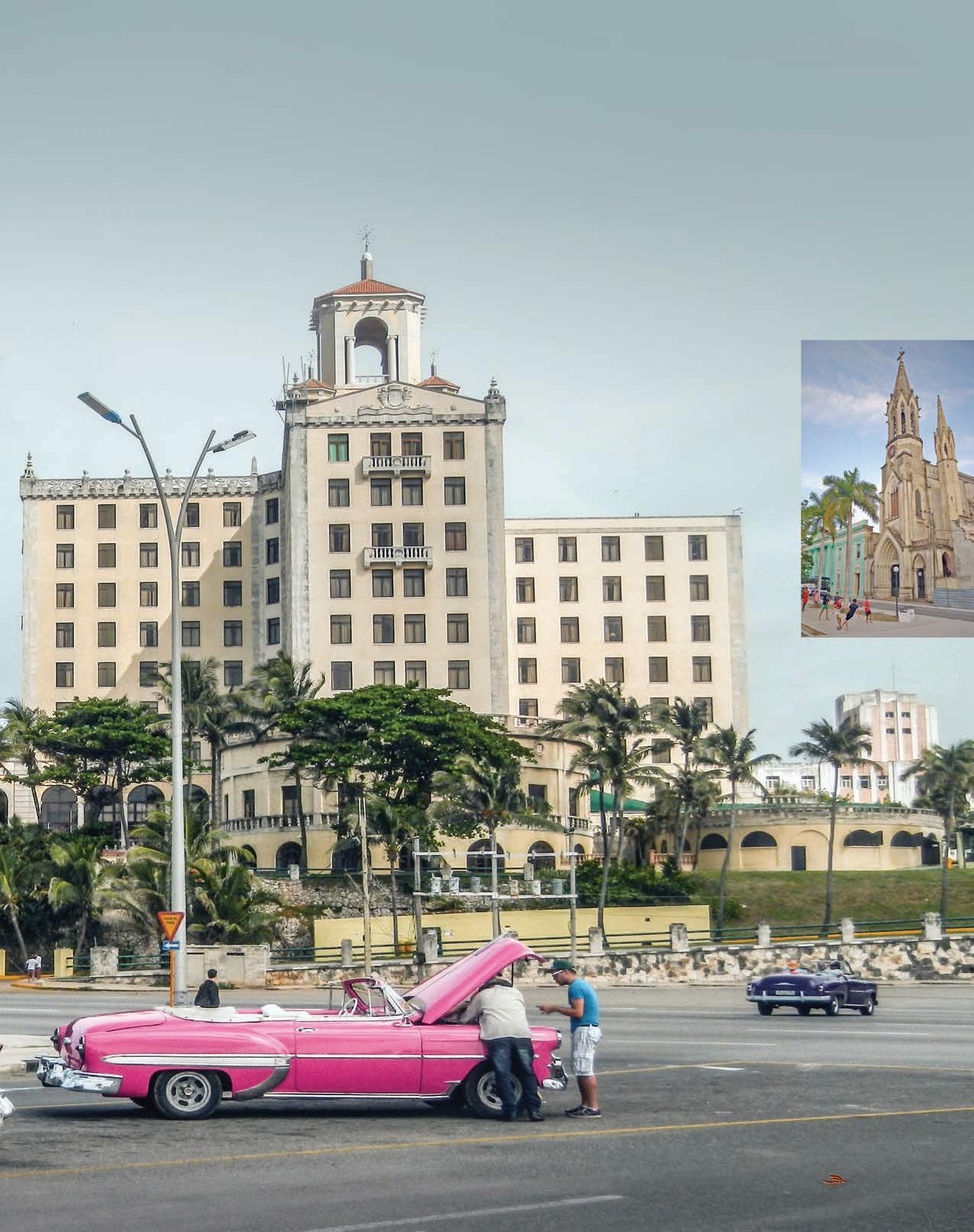 HAVANA ’ S MALECÓN is a broad, 8-mile long esplanade that stretches from the mouth of Havana Harbor in Old Havana to the Vedado neighborhood. Due to recent economic reforms that allow Cubans to own private businesses, it’s now lined with tourists and entrepreneurs.