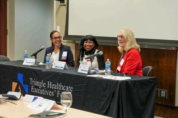 Panelists Dr. Tracey Simmons-Kornegay, Health Director for Duplin County; Dr. Leigh Gurley, Pharmacy Manager at ECU Health Duplin Hospital; and Leah Burns Pfister, Vice President of System Affiliations and Integration at UNC Health, shared firsthand experiences. They spoke from the front lines of care delivery and advocacy.