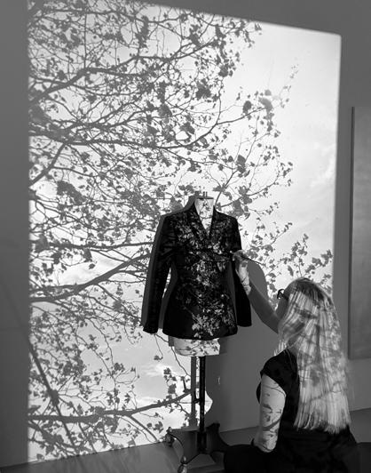 Crafted in collaboration with celebrated British artist Sue Arrowsmith, these intricate metallic jacquard pieces are wearable works of art.