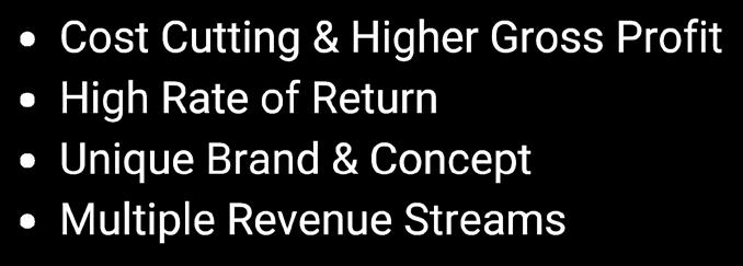 • We Make Good Money Low Investment, Quick to Breakeven, Strong Returns