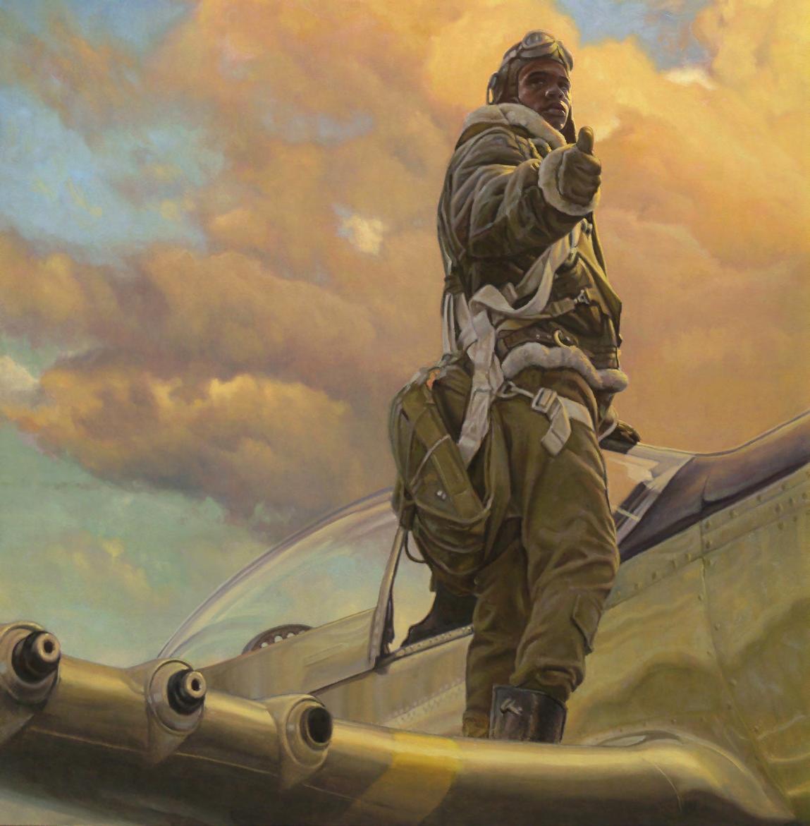 A visual narrative that records and pays tribute to the African American squadron of fighter pilots, grounds crew, and the families that served in the second world war. This is a story of a people who fought two very different wars. One war was in Europe and the other one at home in the United States the very land that they were fighting for. Research and reference for this project has been obtained by varied literature, by the generosity of historians, by interviews with surviving members of the Tuskegee Airmen and by way of the Air Force Art Program.