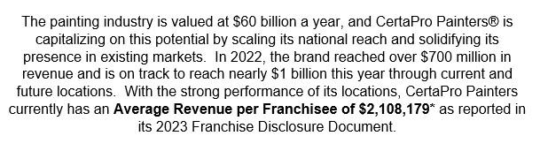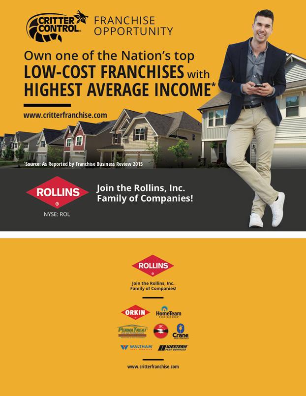 WWW.FRANCHISEJOURNAL.COM | OCTOBER 2023 7 86 GARAGE KINGS® Experiencing Tremendous Growth in the First Half of 2023 90 CRITTER CONTROL Over 30 Years of Success by JC Canty 94 LAWN DOCTOR Why Becoming a Lawn Doctor Franchise Owner Is a Great Career Move for First Responders by Dave Newman 102 MOSQUITO HUNTERS How Mosquito Hunters Provides Its Franchisees with Diverse Streams of Revenue by Eric Martin 106 PILLAR TO POST HOME INSPECTORS® Former Fire Department Official Brings Decades of Experience Detecting Home Safety to Franchise by Rhonda Sanderson 110 SMARTHOMZ The Premier Provider of Residential and Commercial Technology Solutions 114 PRESERVAN Pioneering Affordable and Sustainable Wood Rot Repair 118 PAUL DAVIS RESTORATION No Better Time to Be a Franchisee Than October-Fire Prevention Month by Rhonda Sanderson 122 QUICKMOUNTTV Franchise: Your Gateway to a Thriving Business 126 HOMEVESTORS Franchise Owner Improves Operational Efficiency by Using Contractors to Make Home Repairs 134 THE MAILWORKS Why Isn’t My Direct Mail Working? by Alex Miller 142 CERTAPRO PAINTERS® Elevating Your Franchise Through the Power of Corporate Culture by Adam Biedenbender 146 GRAB AND GO VENDING Business Opportunity 150 CORPORATE CLEANING Specialized Commerical Cleaning Services 154 CRUSHR Crushing Trash for Over Eight Years! 158 TEMPORARY WALL SYSTEMS A Versatile Construction Containment Solution 62 110