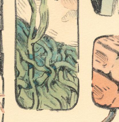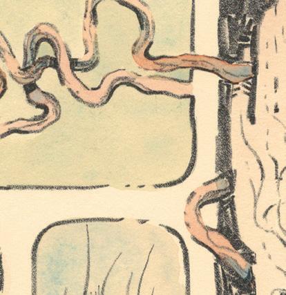 and queer history. Through colorful visuals, her narrative work explores how we express identity while including an uncomfortable underbelly to ground her figures. She received her BFA in Printmaking at CSU, Chico in 2023 and finished a residency at Pedal Press the following year. Since graduating, she works as a freelance artist and teaches workshops on the medium. ig: @boyneptunes