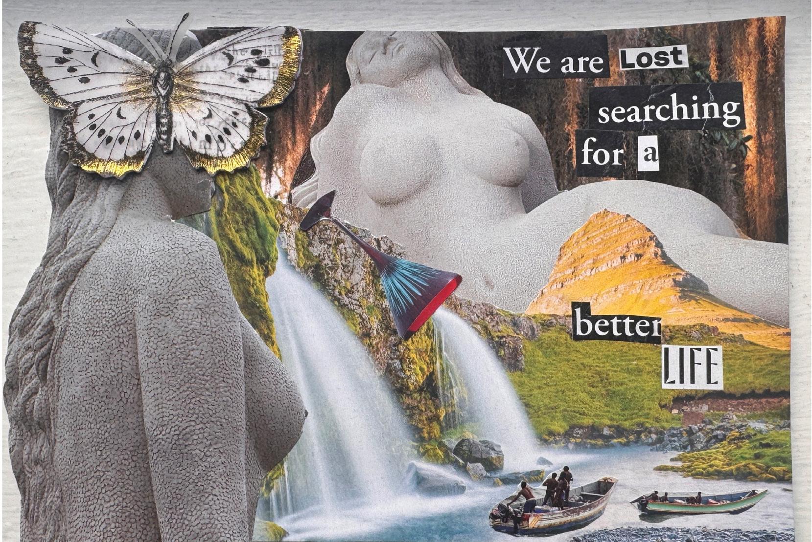 ALapointe (she/they) is a multidisciplinary collage artist and filmmaker based out of Los Angeles. Her work has been featured in VICE , BuzzFeed, and in galleries across California. Her work challenges the constructs of truth, memory, and identity, repurposing obscure and personal moments lost to time, to build an entirely new composition. A explores trans identity by fabricating new memories--collecting found photos, shredding them, and assembling them into new contexts. website: www.alapointe.net ig: @lapointe_work