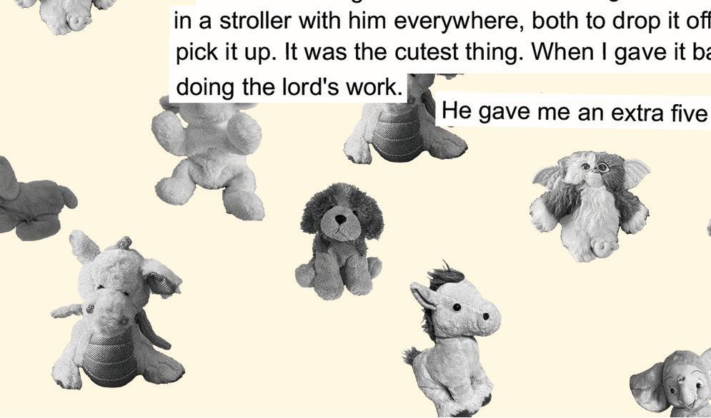 Olivia Baldacci (she/they) is a mixed-media artist based in New York City, originally from Bangor, Maine. Her work explores how media helps form our cultural norms, specifically our conceptions of identity and has appeared in Feral, Brawl, The Amazine, and The Olivetree Review. Olivia holds a BA in Media Studies with minors in Art History and Women’s & Gender Studies from Hunter College. website: www.oliviabaldacci.squarespace.com ig: @oliviabaldacci