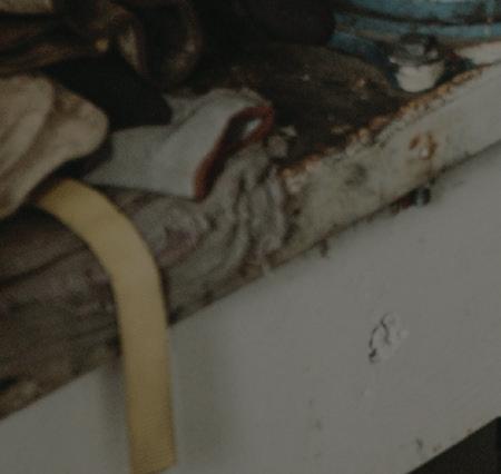 exchange for a bed, meals, and access to the camp’s art programs, I worked three hours each day weeding the garden, cooking meals, and cleaning cabins. It was quiet then, the kitchen resting in the lull between breakfast and lunch rushes. Only the head gardener was there, steeping her nettle and chamomile tea on the stove. She flashed a toothy grin, and I nodded a hello back as I walked briskly past her to the storage shelves at the far end of the room. I rooted around until I found the tub of towels and stuffed one into a large plastic dish bin, then rushed back outside.