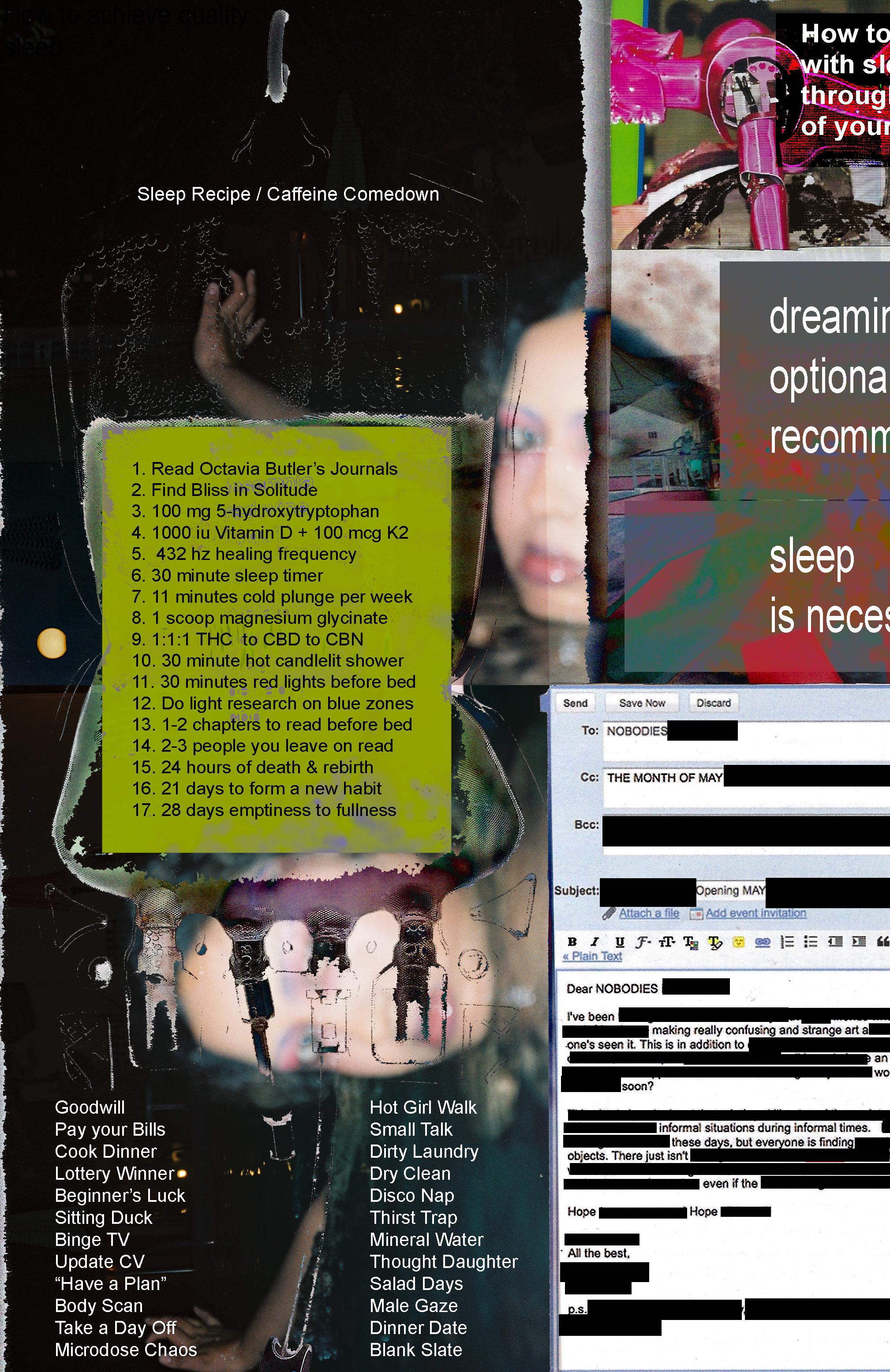 maanasa (she/her) is a writer and multimedia artist based in Los Angeles, who creates using makeup artistry, film photography, digital collage, and streamof-consciousness poems and prose. She seeks to make sense of niche cultural trends and to explore the concept of time in her work, leading up to a bildungsroman about 20-somethings. ig: @chill_girl_archetype