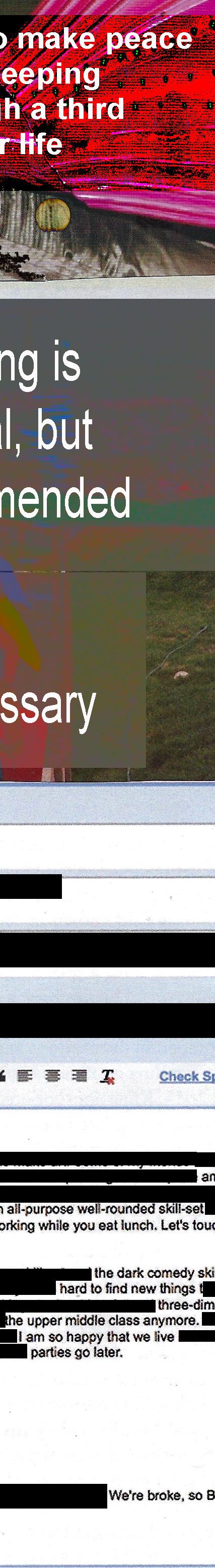 • Traveling aimlessly in a desperate search for meaning, relying on the kindness and couches of friends/friends of friends