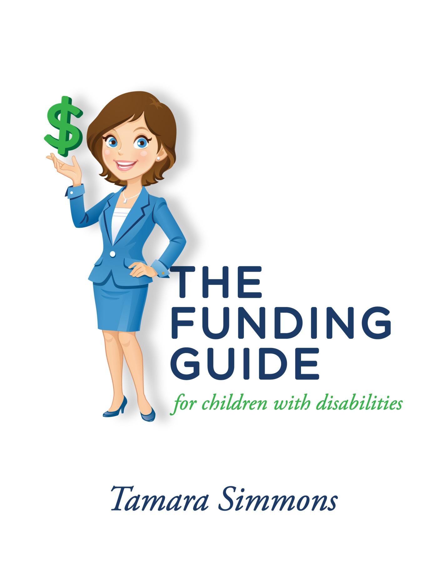 The Funding Guide for Children with Disabilities and Triumph Press do not guarantee funds raised or becoming a recipient of funding sources; rather they provide general information about fundraising as a service to the community. The information contained in this book is not a recommendation, referral, or endorsement of any resource, therapeutic method, service provider or funding source. Tamara Simmons and the publisher Triumph Press are not responsible for any information or services provided by third parties. You are urged to use independent judgment when utilizing the information provided in this book.