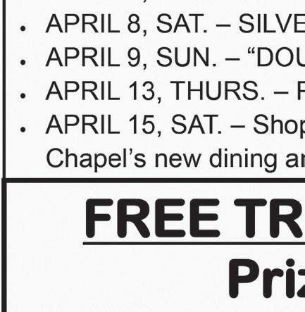JOIN US FOR FREE FESTIVITIES THAT WILL INCLUDE AN EGG HUNT FOR CHILDREN 8 AND UNDER, A RAFFLE FOR BASKETS, CHILDREN'S ACTIVITIES, MUSIC, FOOD AND FUN.