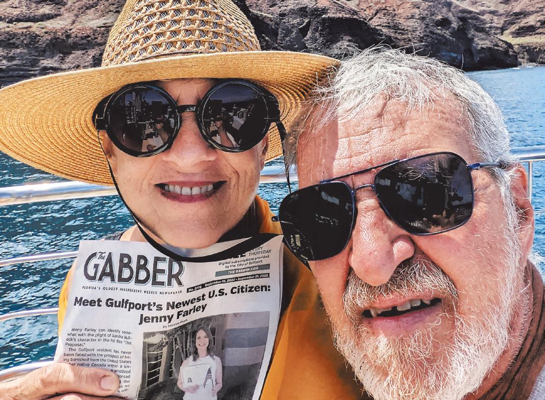 vacation BOB GLASER The Gabber cruised the NaPali coast of Kauai with Karyn Kozak and Bob Glaser. Sooo thankful to have ridden out Ian there and still have a house to come back to in great Gulfport! Have you taken the Gabber somewhere? We want to see your pictures! Please send a high-resolution photo and a brief description to news@thegabber.com.