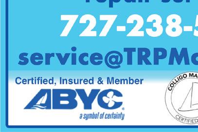 , I.S.A. Certified Arborist 727-220-0226 AnAffordableArborist@gmail.com Planting • Trimming Tree & Stump Removal Cabling/Bracing • Pruning/Shaping AFFORDABLE PROMPT • RELIABLE Licensed & Insured Place your classified line ads online! Deadline for classified ads is 3 p.m. Friday for the following week’s issue. theGabber.com Help Wanted The Perfect Part-Time Job! Flexible Hours...Tell Us When You Want To Work... Supplement Your Income By Helping A Senior! Call Us Today At (727) 401-4700! License #: 234757, 299994709 Marine Repair WE ARE HIRING FREELANCE & STAFF REPORTERS The Gabber Newspaper seeks reporters to help tell our community's stories. Area of focus will be arts, features, events, and food. Call 727-321-6965 Monday, Tuesday or Friday between 10 a.m. and 3 p.m. for more details. TREE SERVICE BY PAYLESS Tree removal, trimming, stump grinding. Also do yard work, mulching, weeding, and yard clean up. Call for estimate: 727-6419033. IRRIGATION STAIN REMOVAL Remove ugly rust-colored irrigation stains from vinyl fencing and most surfaces around your house or business, including signage. Free estimate and demonstration. Call/text 727-360-7070. ruststainremoval@icloud.com