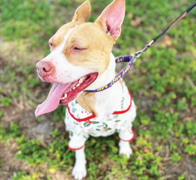 of jammies. Can you be her not-sosecret Santa and give her a home? This 2-year-old still has the heart of a puppy, and she loves to play with other dogs (but please arrange a meet-and-greet with yours). Danni came to Pet Pal with skin and ear infections, but she’s all better now and ready to go to her forever home and has now been cleared for adoption. Tina Grieshop sponsored her via The Pit Project, so Danni’s adoption fee is only $75. Danni’s spayed, vaccinated, micro-chipped and dewormed. Pet Pal Animal Shelter, 405 22nd Ave. S., St. Pete. 727-328-7738; petpalanimalshelter.com.