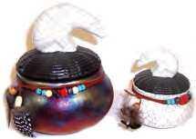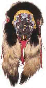 13” Tall Hand Decorated with Buckskin Masks and Beads