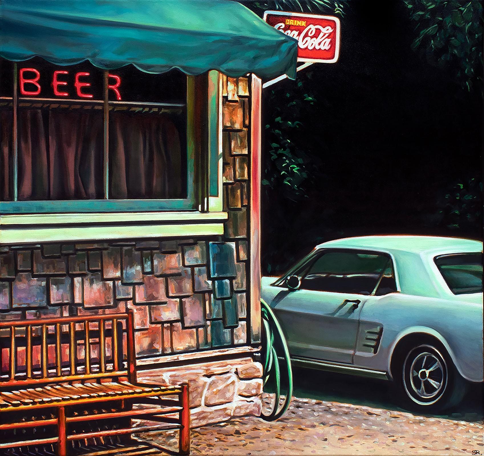 In my latest show, I resonate with Marcel Proust's discovery near the end of his novel ''In Search Of Lost Time'' —that a primary source for art and inspiration can be found in the past, where beauty and meaning are already shaped by time. So too I faced a similar hunt for subject matter and meaning early on in my career. It wasn't until I discovered old photographs in a second-hand store that I found my muse. Time had etched them with nostalgia, memory, and the weight of moments once lived. They were not simply images, but unintentional works of art. Like Proust, I realised my role was not to invent, but to recognise—to give full attention to what time had already made beautiful. This series is part of an ongoing exploration into the emotional residues of midcentury popular culture. Drawing from the visual language of classic cinema, vintage magazines and old postcards, I use imagery from the 1960s and 70s to reconstruct environments saturated with a sense of reminiscence and nostalgia.
