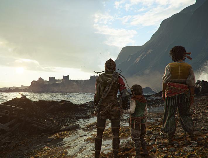 Like the previous game, God of War Ragnarök adopts a semi-open-world structure, enabling you to freely travel between realms, navigating the larger areas by boat or wolf-drawn sled. And while there’s some familiarity in the places you’ll explore, developer Santa Monica Studio has gone to great lengths to ensure that they look and feel different, whether it’s the frozen Lake of Nine or the elven realm of Alfheim – it’s great to revisit old haunts to see how they’ve been transformed by Fimbulwinter and the intervening years. Meanwhile, Kratos and Atreus find themselves grappling with a doomladen prophecy, which, naturally, revolves around the coming of Ragnarök itself.