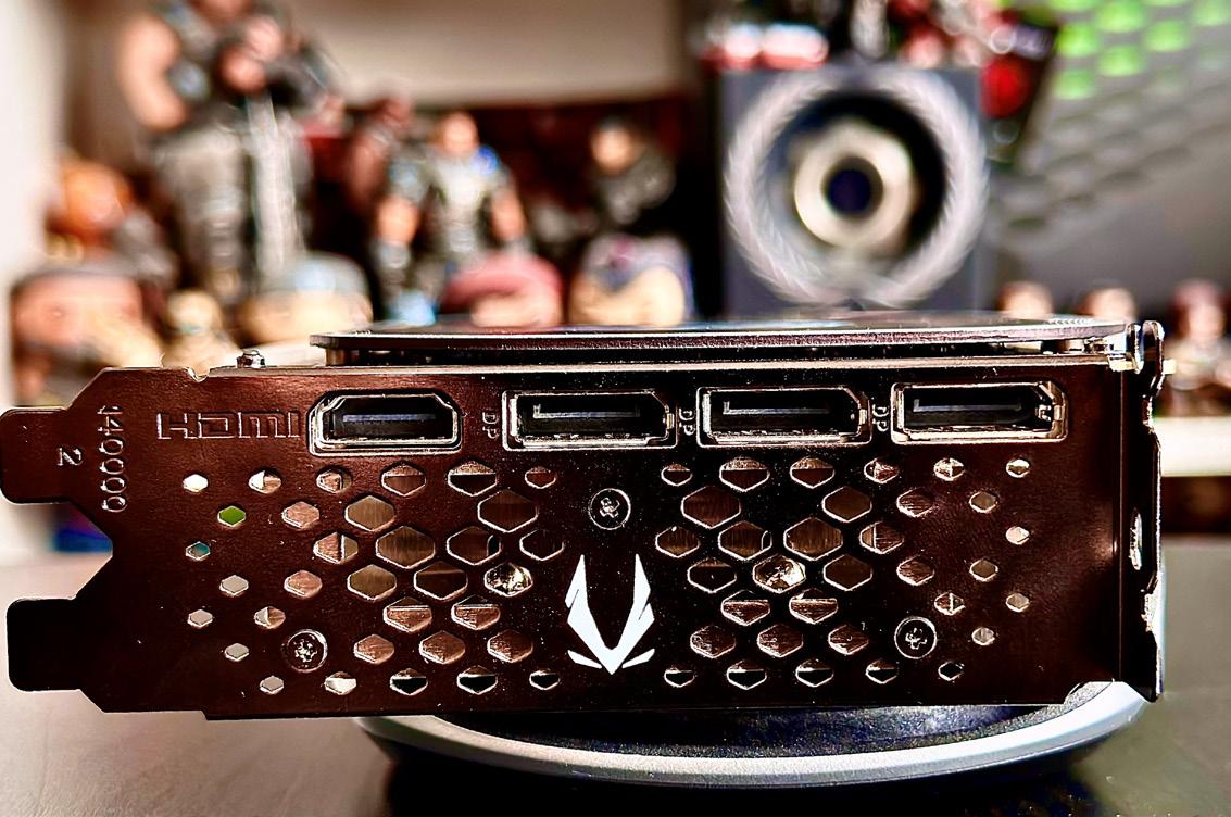 Moving over to connections we have the standard three DisplayPort 1.4a and a single HDMI 2.1. On the expansion slot cover you’ll find another Zotac Gaming logo.
