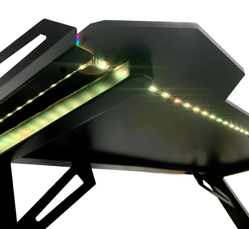 Firstly we will begin with the gaming desk as this is not their main focus we choice to dive into such a niche first and we was very much please, let’s talk technicality at a first glance this British designed table is a solid piece of functional furniture, Black with an attractive yellow and white prominently display BraZen brand, It has a steel frame and melamine/carbon fibre board table top, Quality RGB lighting with USB power connectivity and a separate controller.