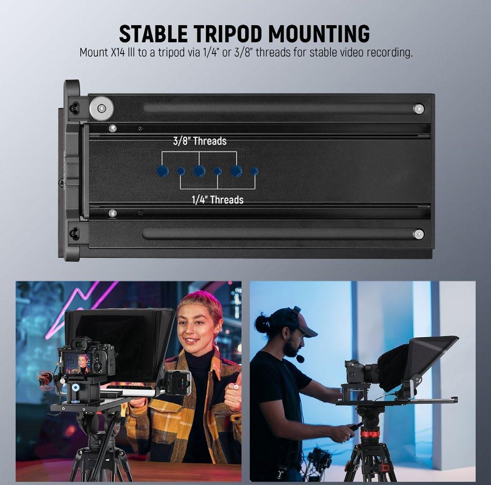 Setting up the Neewer X14 III is straightforward, requiring no assembly. This user-friendly design means that you can have the teleprompter up and running in a matter of minutes, which is crucial for time-sensitive shoots. The foldable design makes it easy to store and transport, and the beam-splitter mirror provides clear and