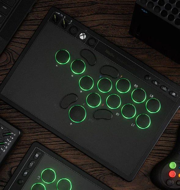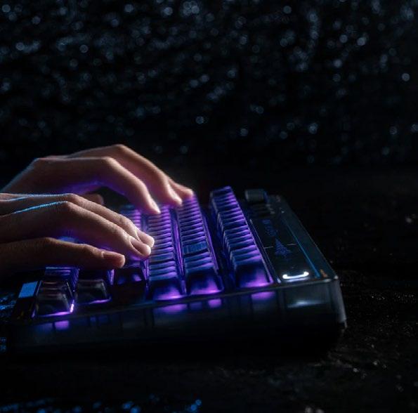 crisp, tactile response that makes hammer-ons and pull-offs feel effortless. The Hall Effect strum bar is smooth and silent, with adjustable sensitivity through CRKD’s companion software, allowing you to fine-tune it for your style. The whammy bar has just the right amount of resistance, and the integrated Navigation Hub, cleverly disguised as guitar knobs, makes menu navigation seamless without breaking immersion. Even the RGB lighting feels purposeful, whether you set it to a static colour or let it pulse in time with the music.