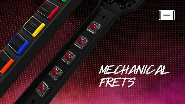 From the first strum, it’s clear this is built for serious play. The mechanical fret buttons have a
