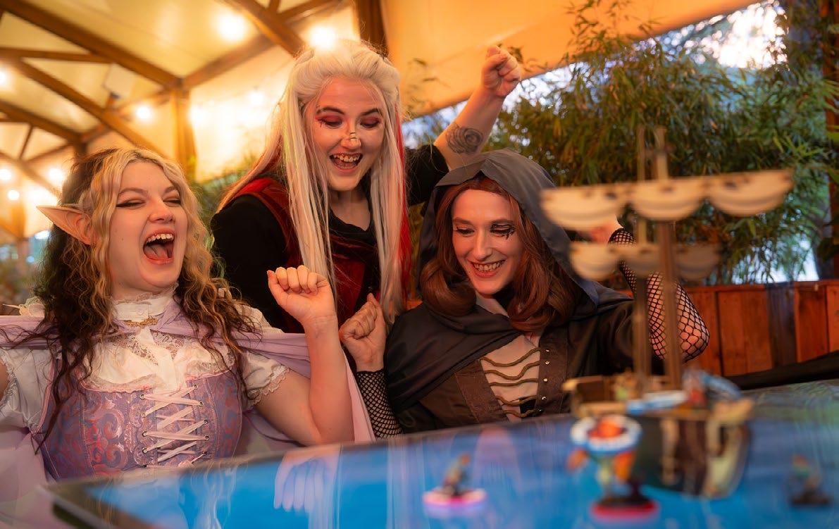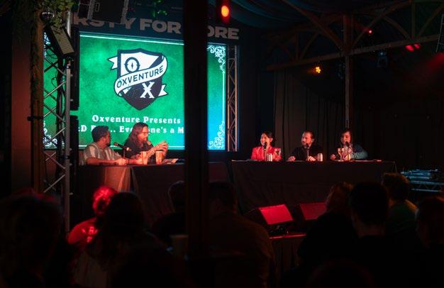 The event has two different time slots per day: Dawn and Dusk. Dawn tickets allowed entry from 12pm to 5:30pm, with its own unique shows, activities and performances. Dusk was the evening ticket, with entry from 6:30pm to 11pm, with one large show on the stage from the likes of Dark Dice, Oxventure and many more amazing performances. We attended on the Friday, which was the last day of festival, having started on the Tuesday that week. The venue itself was easy to get to and very accessible, which was important for both the attendees and organisers. Whilst it didn't take place in the entire Between The Bridges venue and was only in one section of it, it was completely closed off via a ramp, so there wasn't any confusion in regards to other businesses opening in the other sections. Upon getting there, we were greeted by an awning that was decorated with ivy, flowers and trinkets, akin to that of an elven party of sorts. It suited the theme of the event so well, having its own private bar and well-lit stage. Tables littered the majority of the space, some already occupied with tabletop RPG players either playing their first ever game or enjoying their on-going campaigns. Along the edges were a few vendors, including the likes of RPG Taverns, a live LARPing experience, calligraphy classes and so much more! Quizzes, shows and panels were also held on the stage throughout both sessions, including an amazing performance from The Nonstick Pans at the beginning of the evening segment of the day. We were lucky enough to catch Oxventure for our RPG show that evening, whilst other days had Rotating Heroes, Dark Dice and many other special guests.