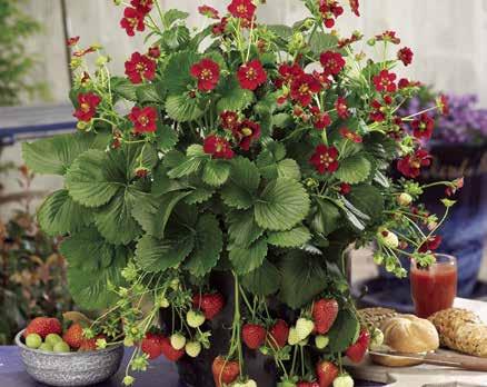 ‘Ruby Ann’ strawberry produces abundant plump fruit in summer and fall. Combining brilliant ruby red flowers and juicy, sweet fruit, this everbearing strawberry delights with its delicious fruit and attractive form. For months on end, ‘Ruby Ann’ puts on a superb display with flowers and strawberries appearing together.