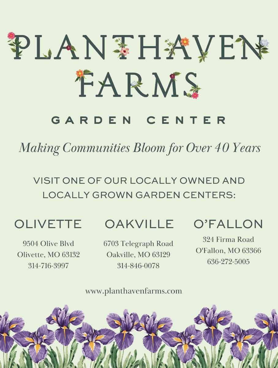 Fri. Noon-8pm, Sat. 9am5pm—The Gardeners of Florissant Annual Spring Plant Sale and Garden Bazaar. Perennials, annuals, shrubs, shade plants, vegetables, herbs, hanging baskets and more! Indoors and climate controlled for your comfort. Easy loading from multiple doors. NEW LOCATION! Florissant Elks Lodge 16400 New Halls Ferry Rd., Florissant, MO 63031.