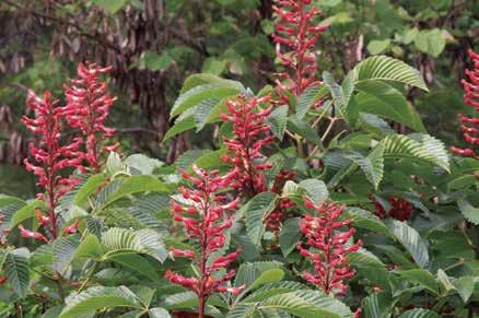 Red Buckeye (Aesculus pavia) is a medium-sized (woody guru Michael Dirr calls it small) shrub that can easily reach 20’ or more in size and width. The shrub is handsome in its own right, but included here because of the 6-8” red panicle flowers it sends out in April to greet the earliest arriving hummers. There are many cultivars that provide variations in shrub size, flower vibrancy, and other differences; I’m happy with the Missouri native straight species.
