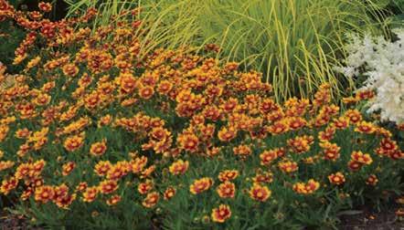 ‘Daybreak’ tickseed, Coreopsis, produces a shower of cheerful bi-color blossoms with a prominent orange-red center and fringed, gold petal tips from early summer through early fall. Being sterile, flowers keep on coming all season long without the need for deadheading. It forms a compact mound of highly disease-resistant, dark-green foliage. It is a fantastic plant that can replace annuals in gardens and containers. Part of the Li’l Bang series of tickseed that are prized for large stunning flowers, tidy habits, long bloom time, and disease resistance.