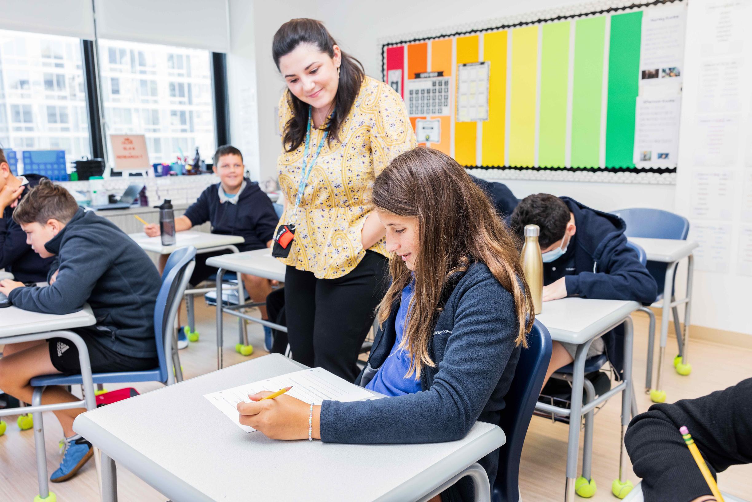 In a language-rich environment, Lower School students acquire fundamental academic and organizational skills, along with the interpersonal skills essential for success in school and in life During the elementary school years, the emphasis in on how to learn and the acquisition of language and literacy skills is paramount. Through their successes in the classroom and as they participate in school life, students develop the self-confidence that inspires them to assume responsibility for their own learning. As awareness of their unique learning needs emerges, Lower School students develop the early skills of self-advocacy and are ready to meet the challenges of Middle School With readiness for college preparatory high school as their goal, Middle School students continue to focus on language and literacy,
