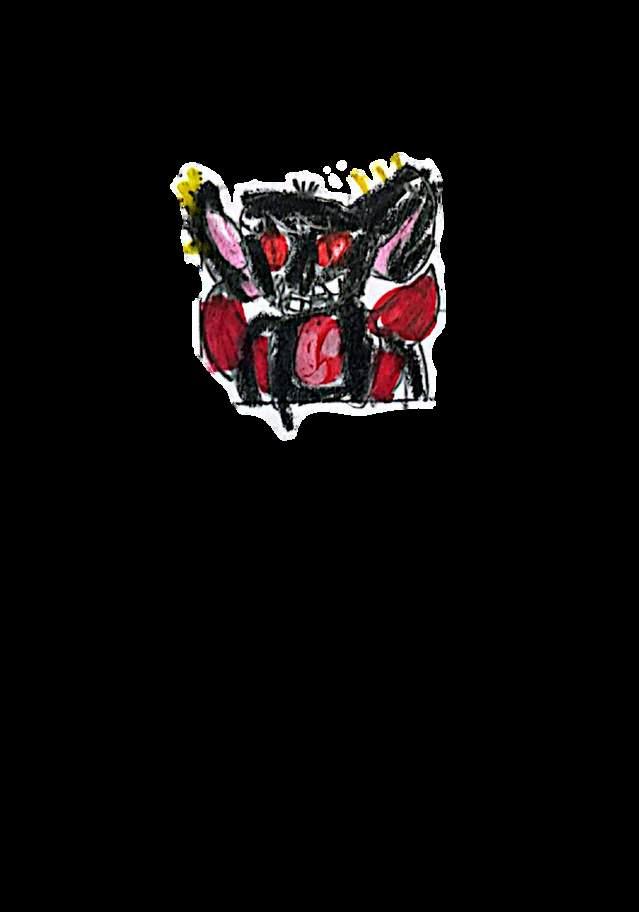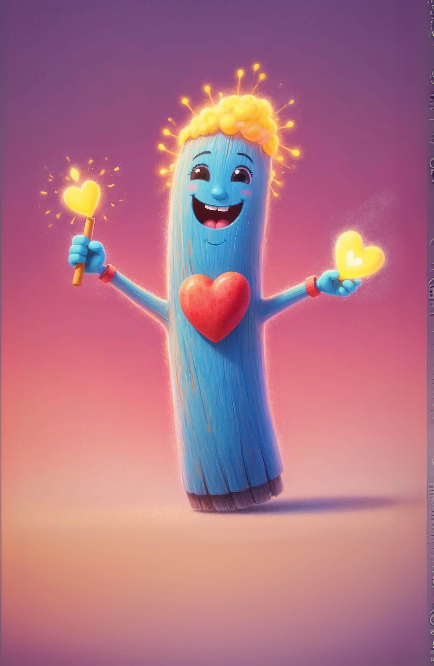 He's small. He has chubby feet, and he can hear from far away. He's blue, he's an alien. He's Spanish. He can fly, he has sharp teeth. He has a dark blue nose.