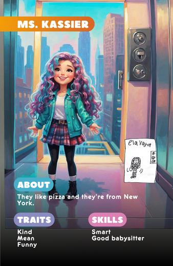 When you play a card, you must explain how it changes the story—what happens next? Keep in mind the characters that have already been played and their traits/skills.