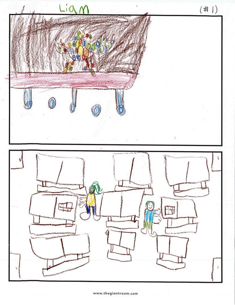 Each player also gathers some paper or a comic strip template and something to draw and write with.