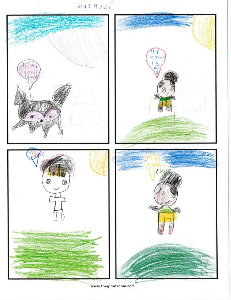 Each player also gathers some paper or a comic strip template and something to draw and write with.