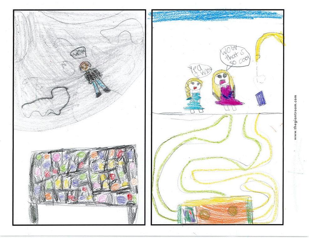 Each player also gathers some paper or a comic strip template and something to draw and write with.