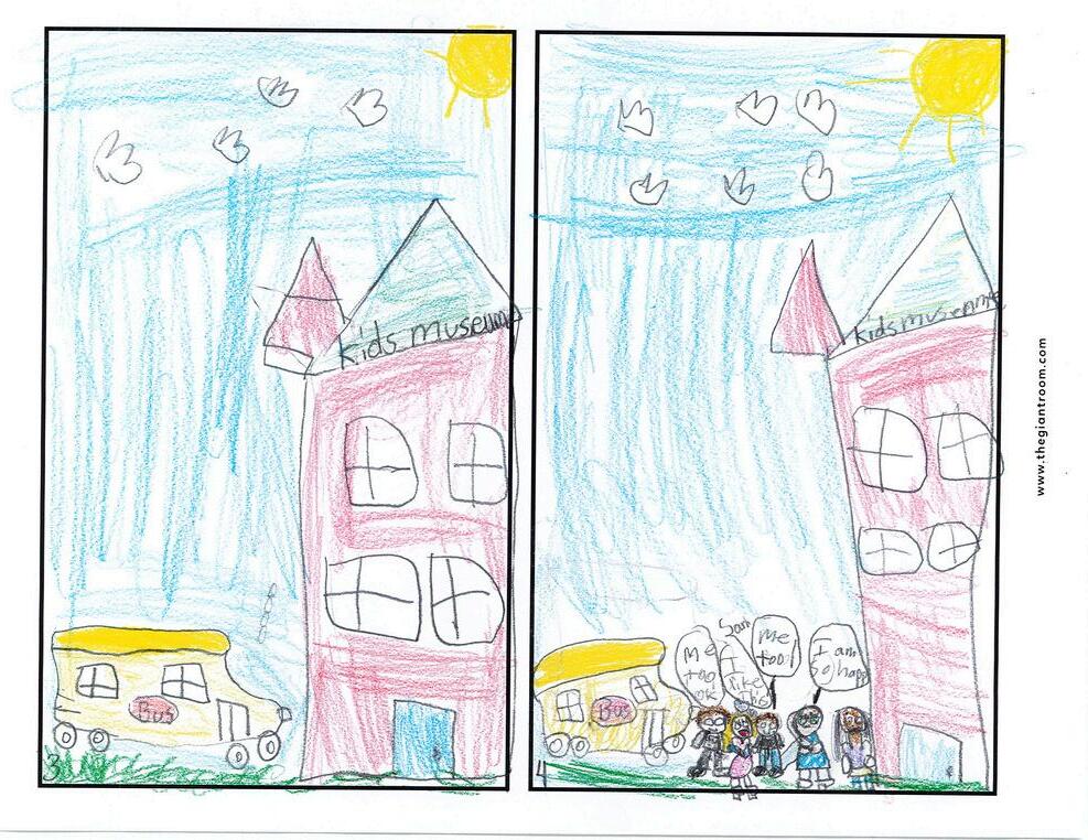 Under or next to the panel, write a short caption or sentence to go with the drawing