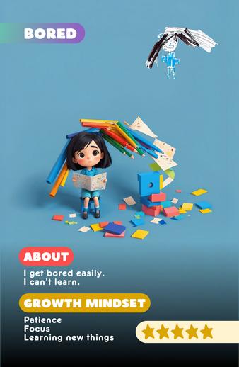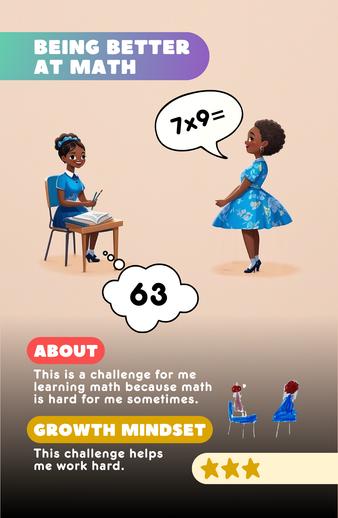 Use Growth Mindset Challenge Cards to add a conflict to your story. Give an introduction and backstory on how your character arrived at this challenge. Your goal is to solve the challenge as quickly and thoroughly as possible while ensuring the story still makes sense.