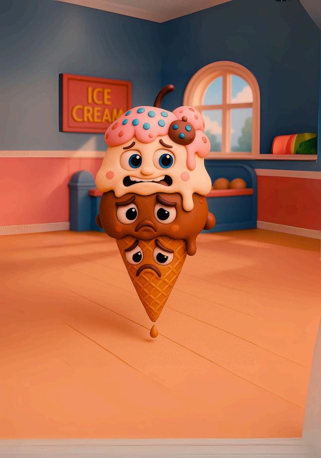 Cherry is excited about everything. Strawberry is always curious.Vanilla is a little bit insane. Chocolate is scared of the canilla, and the cone is always sad.