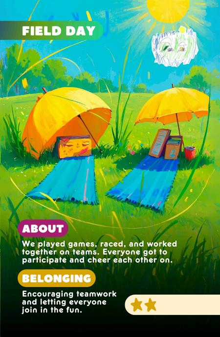 We played games, raced, and worked together on teams. Everyone got to participate and cheer each other on.
