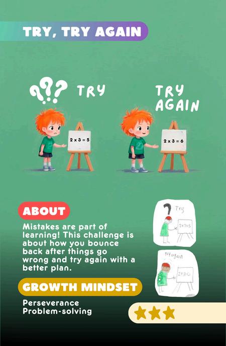 Mistakes are part of learning! This challenge is about how you bounce back after things go wrong and try again with a better plan.