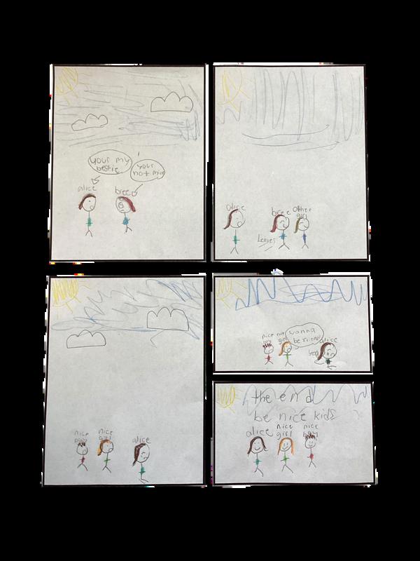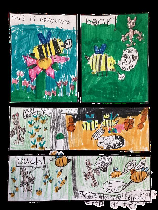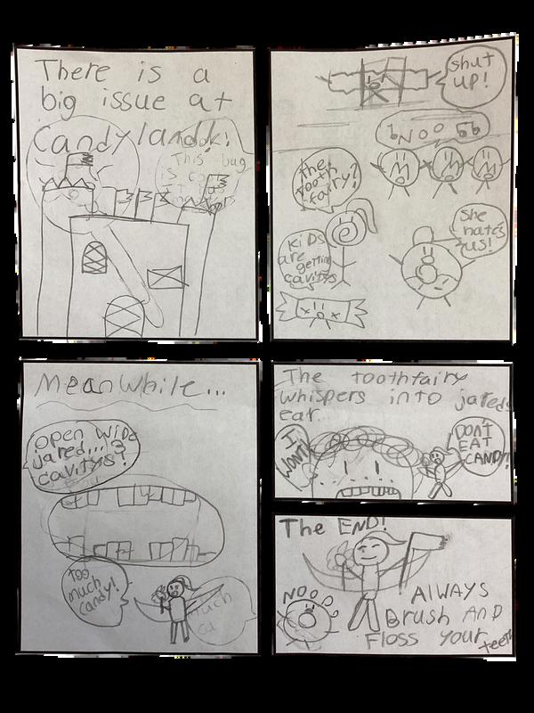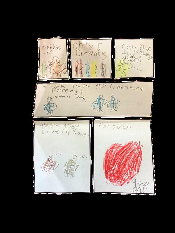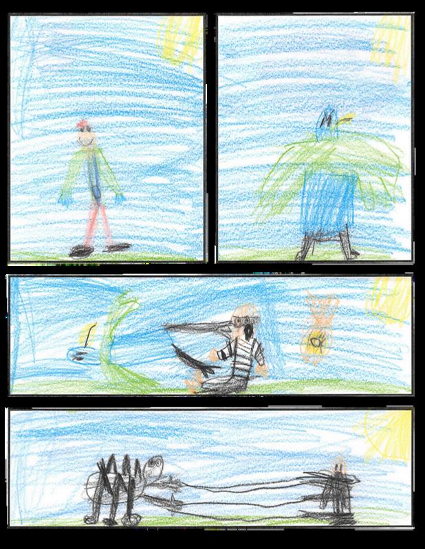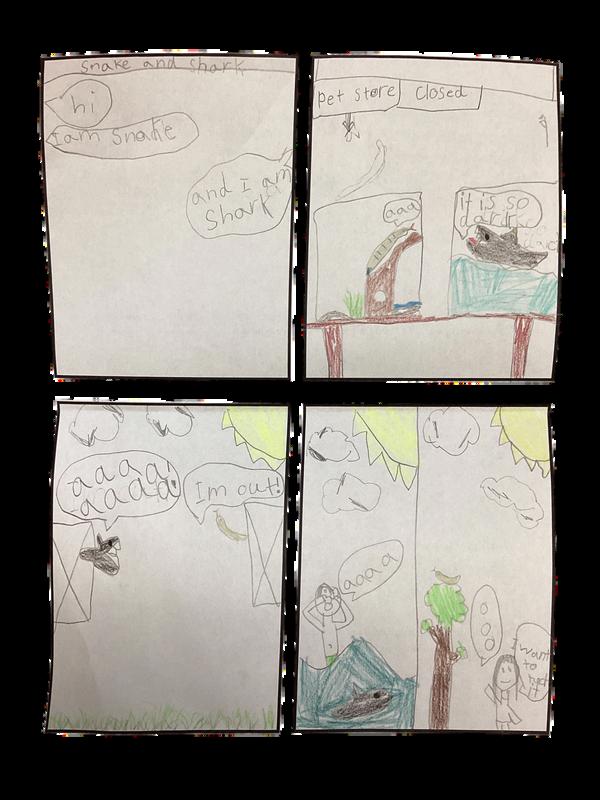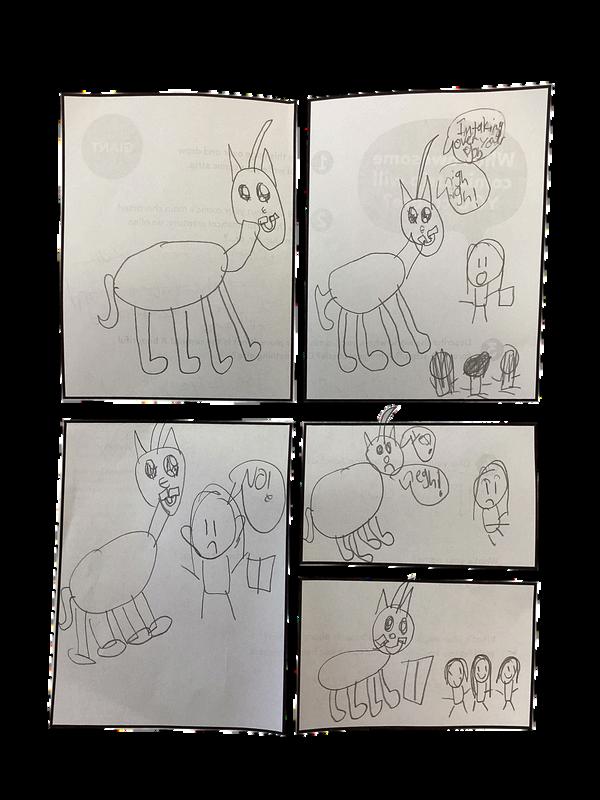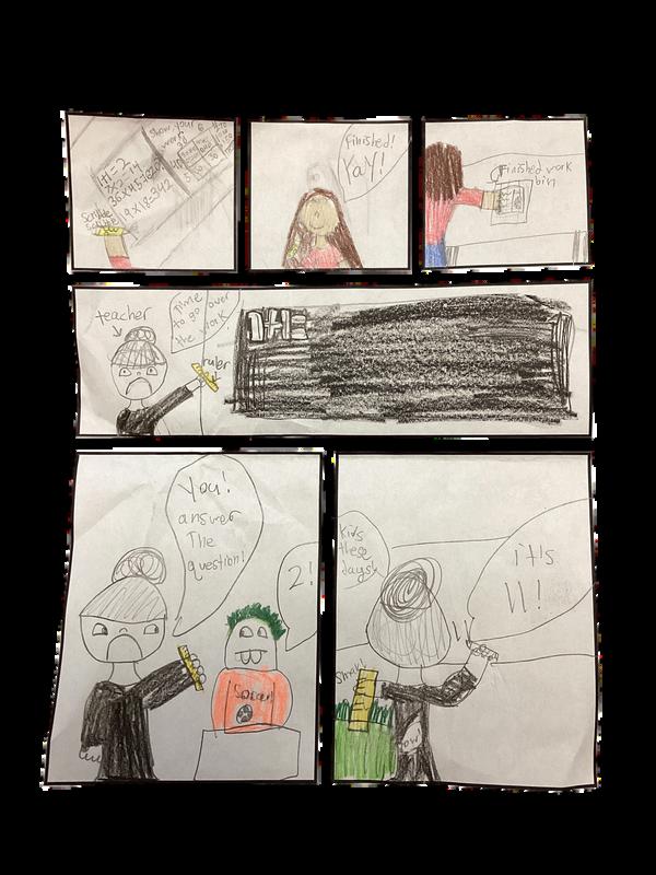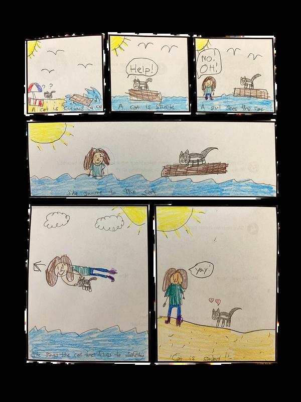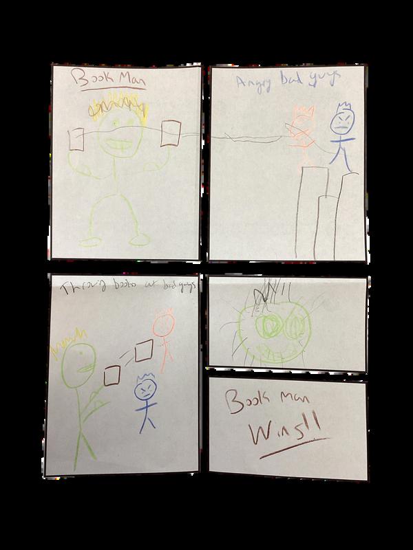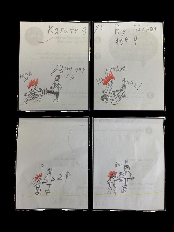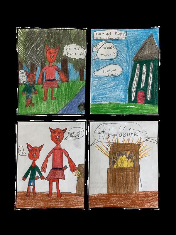 More than 45 participants joined, dreamed, created, and shared their stories and comic strips. Here, we have “remixed” their creations into one GIANT book of comics. Each comic has its own title page with the story’s title, the author’s name, and the author’s age. Using participants’ ideas, drawings, writings, and input, we created AI-generated avatars of the characters that appear in their story and an AI-generated background image as the setting for their story. There’s even a place for participants to add their official author signature!