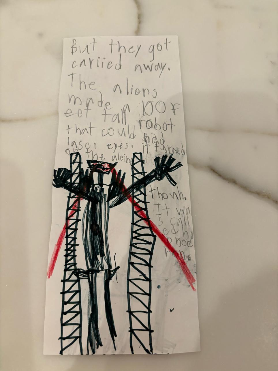 But, they got carried away. The aliens made a 100-foot tall robot that could shoot lasers out of its eyes. It turned on the aliens, though. It was called Hypnocron.